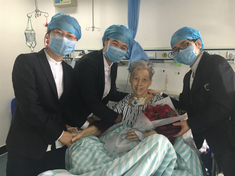 獻(xiàn)上美麗的鮮花,新老護(hù)理人員合影,精彩瞬間定格成永恒。