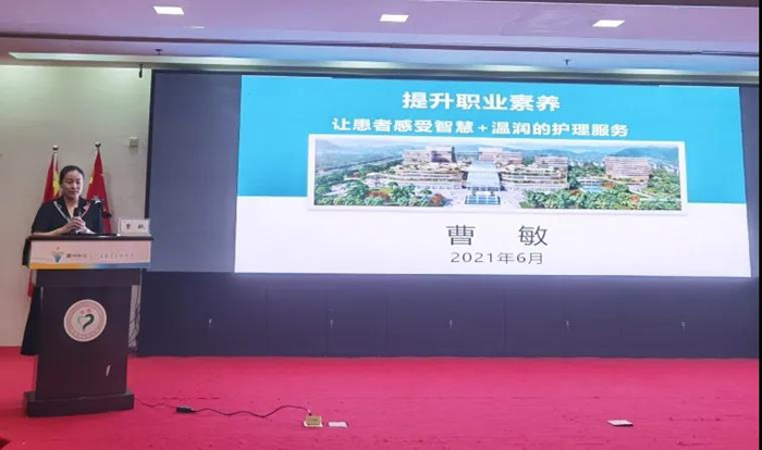 紀(jì)委書(shū)記曹敏作《提升職業(yè)素養(yǎng)——讓患者感受智慧+溫潤(rùn)的護(hù)理服務(wù)》的專(zhuān)題講座,圍繞什么樣的服務(wù)是“好服務(wù)”、如何做一名合格的職業(yè)化護(hù)理工作者、如何做有品質(zhì)的護(hù)理服務(wù)等方面進(jìn)行生動(dòng)的闡述,鼓勵(lì)全體護(hù)理人員通過(guò)轉(zhuǎn)變服務(wù)理念,樹(shù)立職業(yè)形象,端正職業(yè)態(tài)度,掌握職業(yè)技能,遵守職業(yè)道德,學(xué)會(huì)職業(yè)溝通,創(chuàng)新服務(wù)內(nèi)涵,為患者提供智慧+溫潤(rùn)的優(yōu)質(zhì)護(hù)理服務(wù)。
